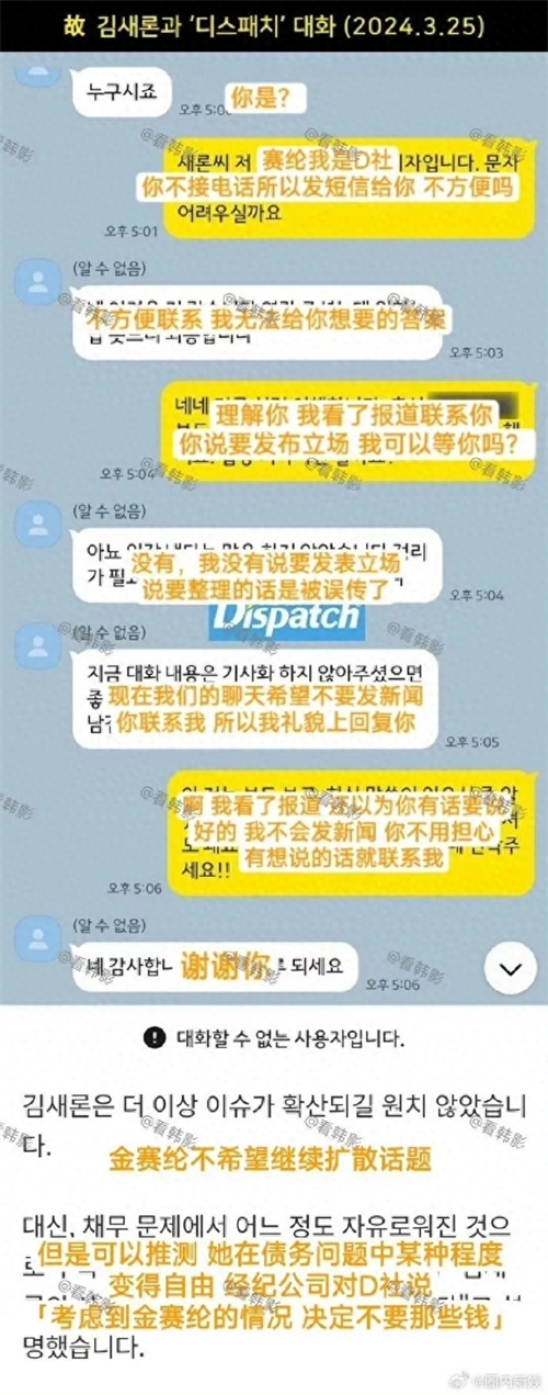 2、金秀贤将金赛纶发给他的短信当天就截图发给了D社,截图日期显示“今天”。