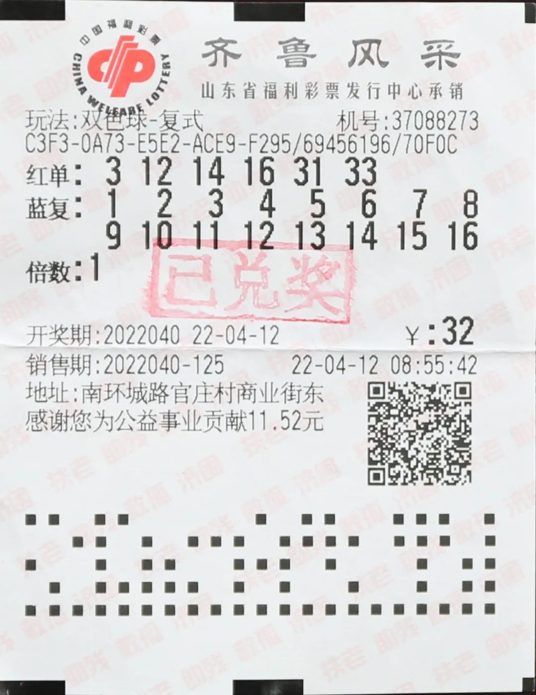 【双色球】山东双色球779万元大奖已兑奖!中奖彩票长这样!