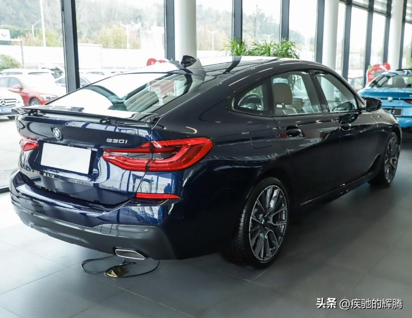 双肾格栅较为扁平,两侧为LED大灯,LED日间行车灯,臻享版,采用20英寸轮毂,内置刹车卡钳,相比于5系长轴轿车,6系GT天生门槛略高,标配无框门,空气悬架,电动扰流板,掀背车身,使得它能够迅速区分5系长轴轿车。