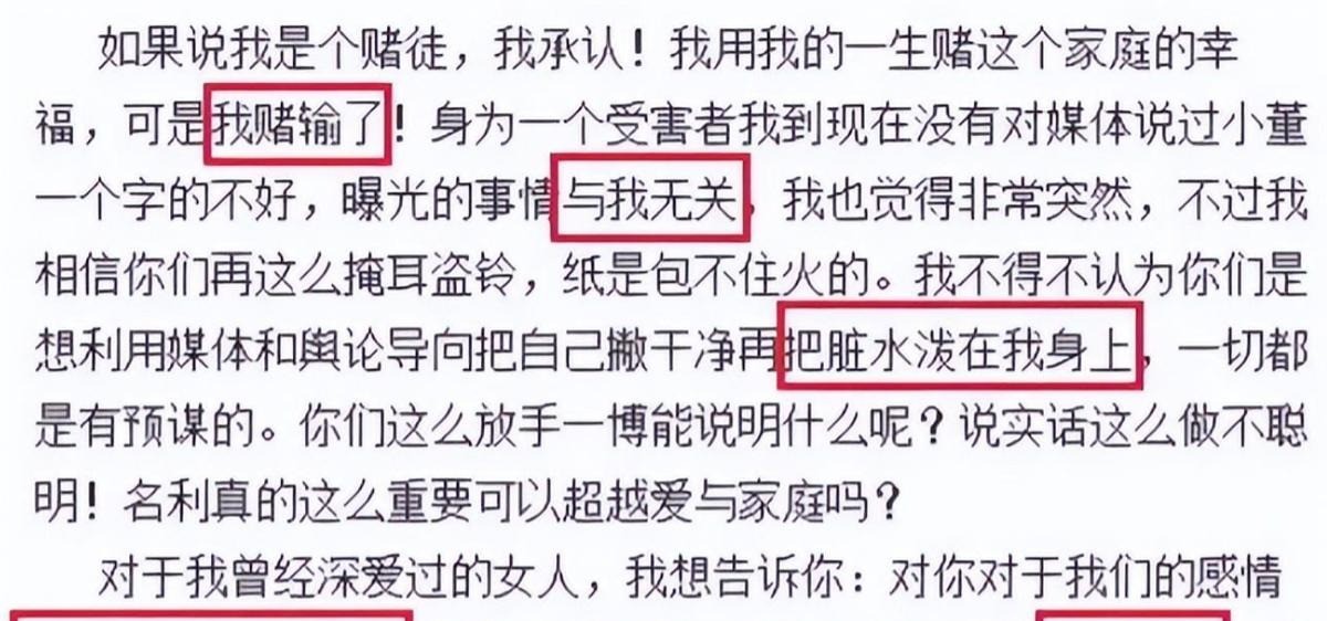 他承认自己爱董洁,也爱他们的孩子。