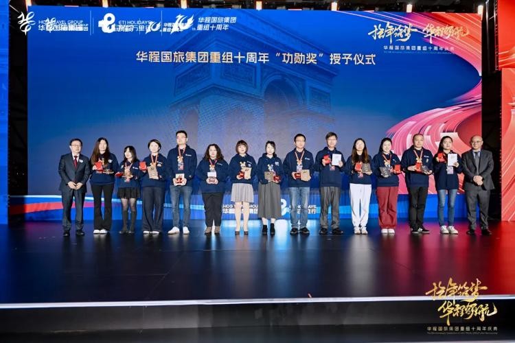 十年共济,点点滴滴,汇聚成了华程国旅集团的辉煌篇章。华程国旅集团重组十年来,司龄超过10年的有70多名员工,十年来,他们与公司共同成长、风雨同舟,公司邀请到全集团各业务板块部分司龄超过10年的13名员工代表来到庆典现场,郭东杰董事长和何勇总裁为他们授予“功勋奖”。更值得一提的是,司龄超过10年的70多名华程精英们都会收获一样的荣耀、奖项。