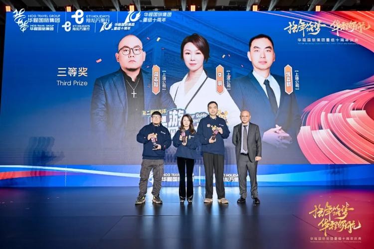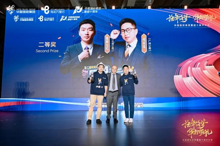 获得三等奖的选手是周志毅、华丽、张云鹤,二等奖的选手是富那日松、何天龙,华程国旅集团总裁何勇颁奖。