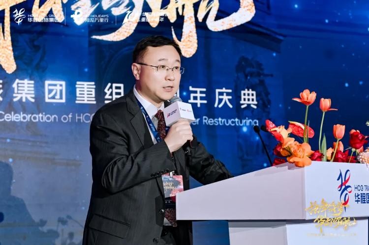 全联旅游业商会会长、大理漾濞苍山石门关旅游开发集团有限公司董事长吉小冬为庆典致辞。“十年磨一剑,华程国旅集团深耕出境游及会展领域,集团业务规模不管扩大,业务布局持续优化,高质量发展态势持续彰显,在经济建设、行业影响、社会责任等方面为中国旅游业的健康可持续发展作出了卓越贡献。祝愿华程国旅集团在郭东杰董事长的战略指引下,做表率、当标杆、立潮头,愿与华程国旅集团在广泛维度展开务实合作,为中国旅游业创造新的驱动力。”