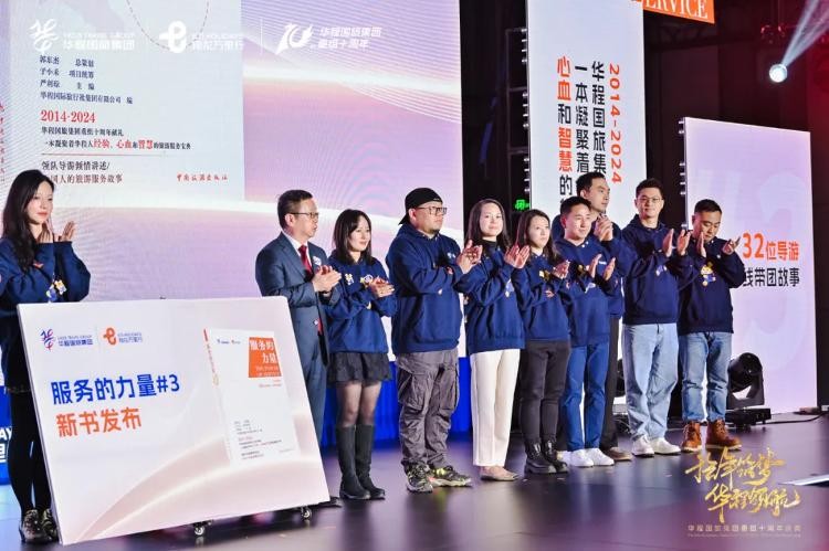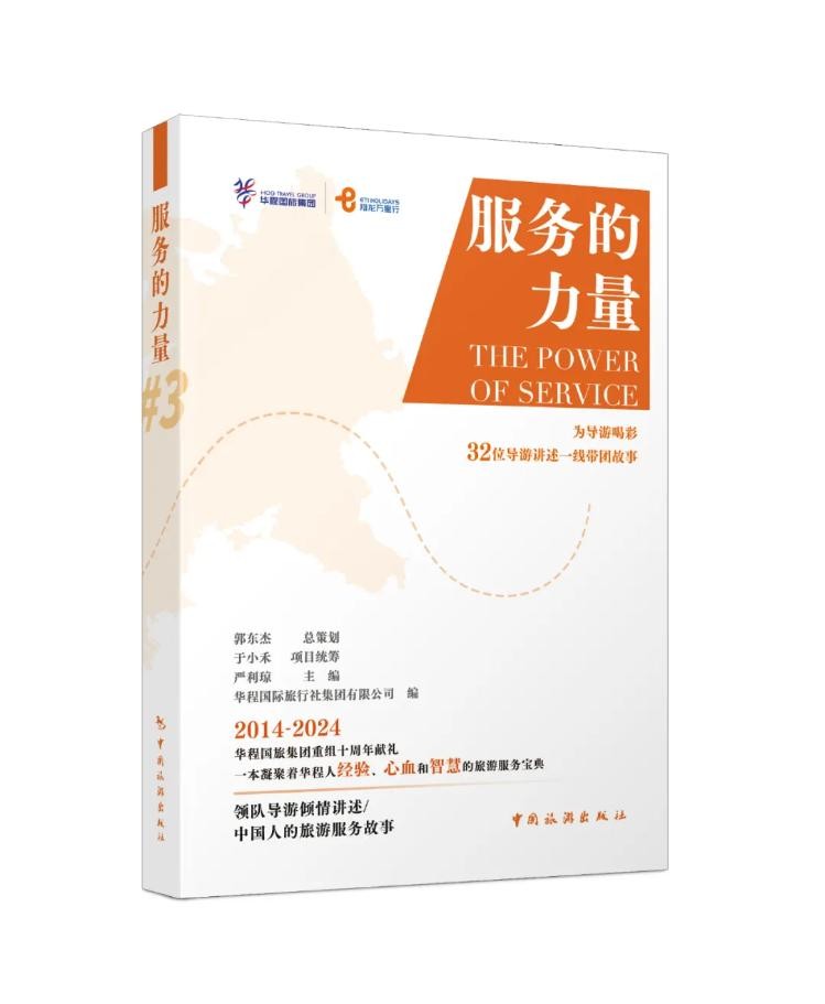 作为对华程国旅集团重组十周年献礼,现场正式发布了新书《服务的力量3》,郭东杰董事长与现场华程国旅集团领队导游们,共同为新书揭幕。该书由华程国旅集团董事长郭东杰担任总策划,中国旅游出版社出版,汇聚了华程32名资深领队导游,展现了他们在出境游一线的带团故事。