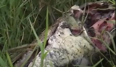谁料,却见草丛中有一个“怪物”趴在那里!