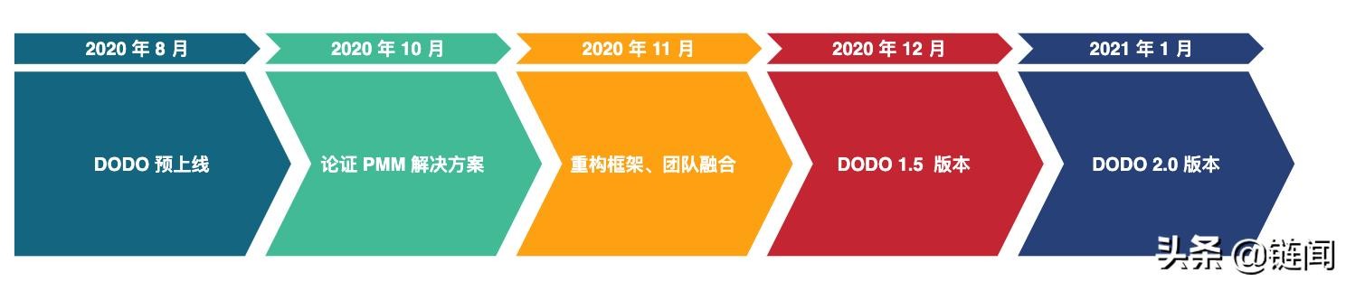从 2.0 的整体发展来看,DODO 开发的时间表是一代销售一代开发一代论证,比如正在销售的是 1.5 版本,正在开发的是 2.0 版本,正在论证的是 2.1 版本,2.1 版本会加治理、交易等方面,整体进行有节奏、有规律创新。