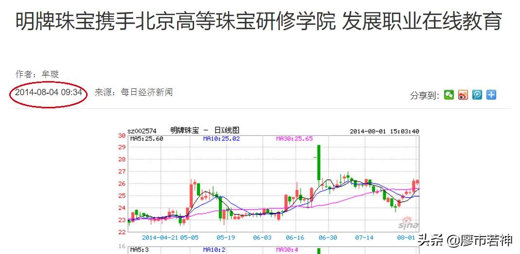 接下来的10月 明牌珠宝谨遵徐翔教诲,连续放出在线教育和上调利润等重大利好,在行业明灯、热门题材、业绩大增等多重因素的加持下明牌珠宝的股价持续走高
