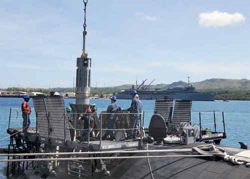 为“洛杉矶”级攻击型核潜艇吊装“战斧”导弹