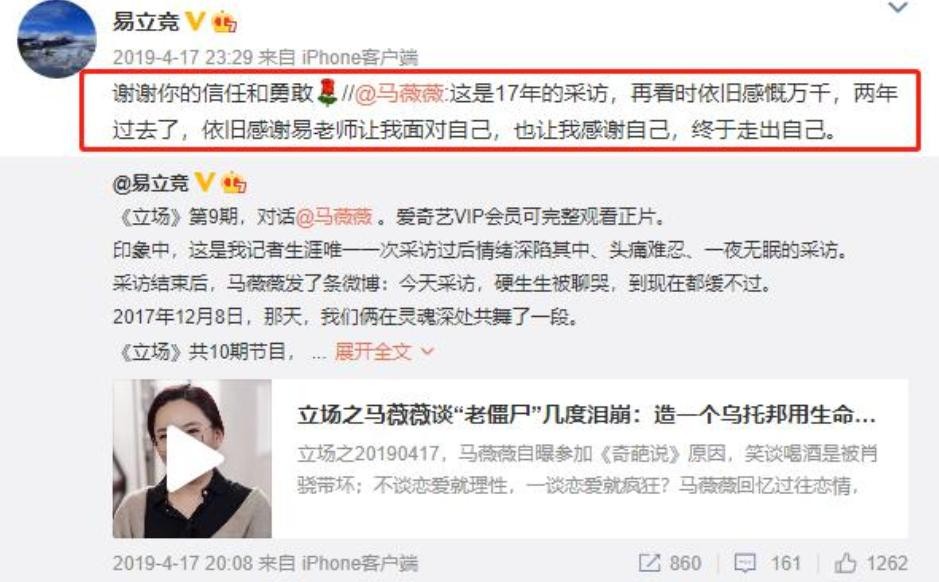 在这次采访结束之后,俞灏明甚至在朋友圈特意感谢了易立竞,就像李亚鹏一样,他们都从和易立竞的对话中更加深层次的知道了自己人生的意义。