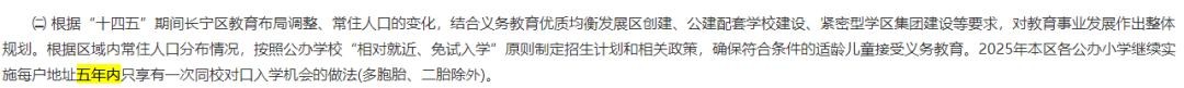 长宁是2015年开始实施五年一户的, 2025年长宁区小学阶段全区实施五年一户 ,初中未提到五年一户。