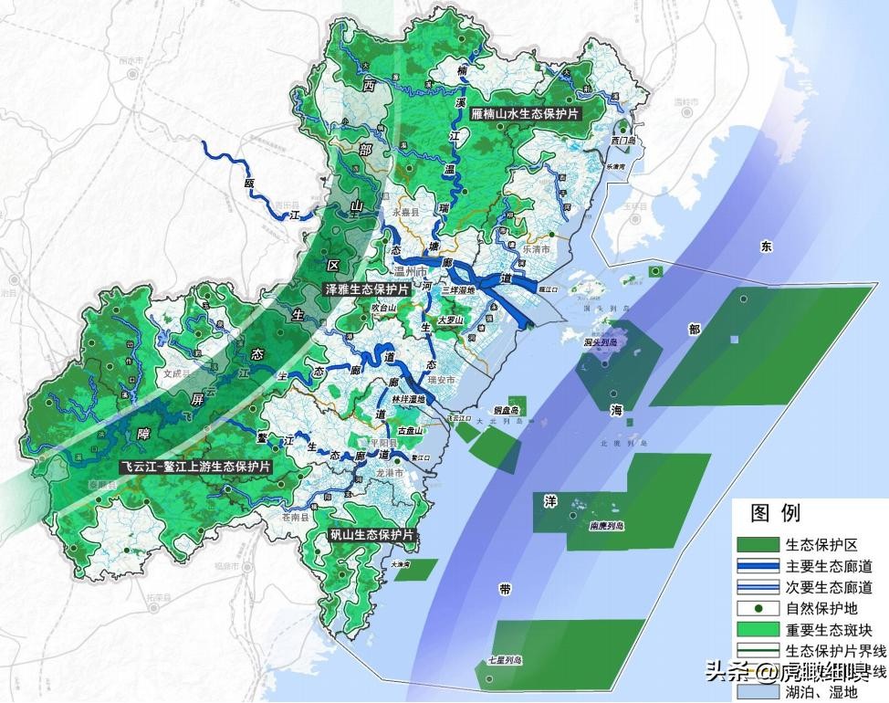 “三廊”即三条“江-岛-海”陆海廊道。包括瓯江、飞云江、鳌江“江-岛-海”陆海廊道。