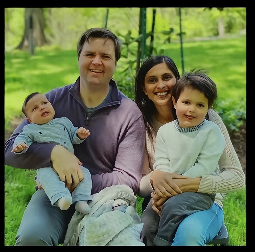万斯与乌莎和两个儿子合影