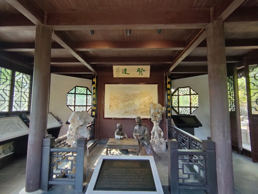 在顾炎武的故居里的花园,一般叫顾园,景色怡人,曲水清波,绿荫葱葱,亭台错落有致,里面有致用阁,思宜园,二石斋秋山亭,三徐居,慈母阁,四柿亭和碑亭等等,通过雕塑和字画来宣传顾炎武,到千灯来旅游的人,这里绝对是我们难忘的景点。