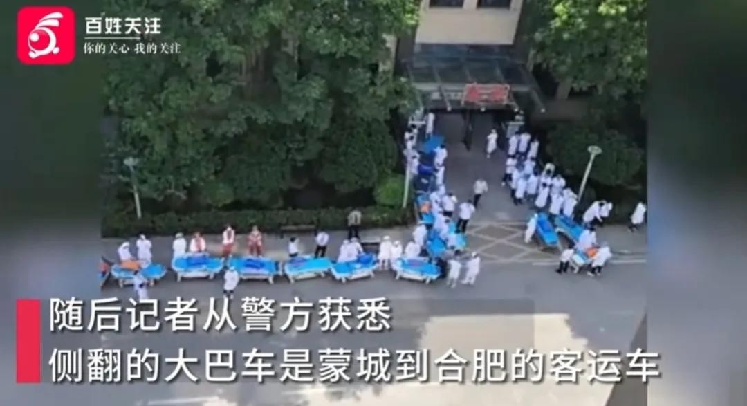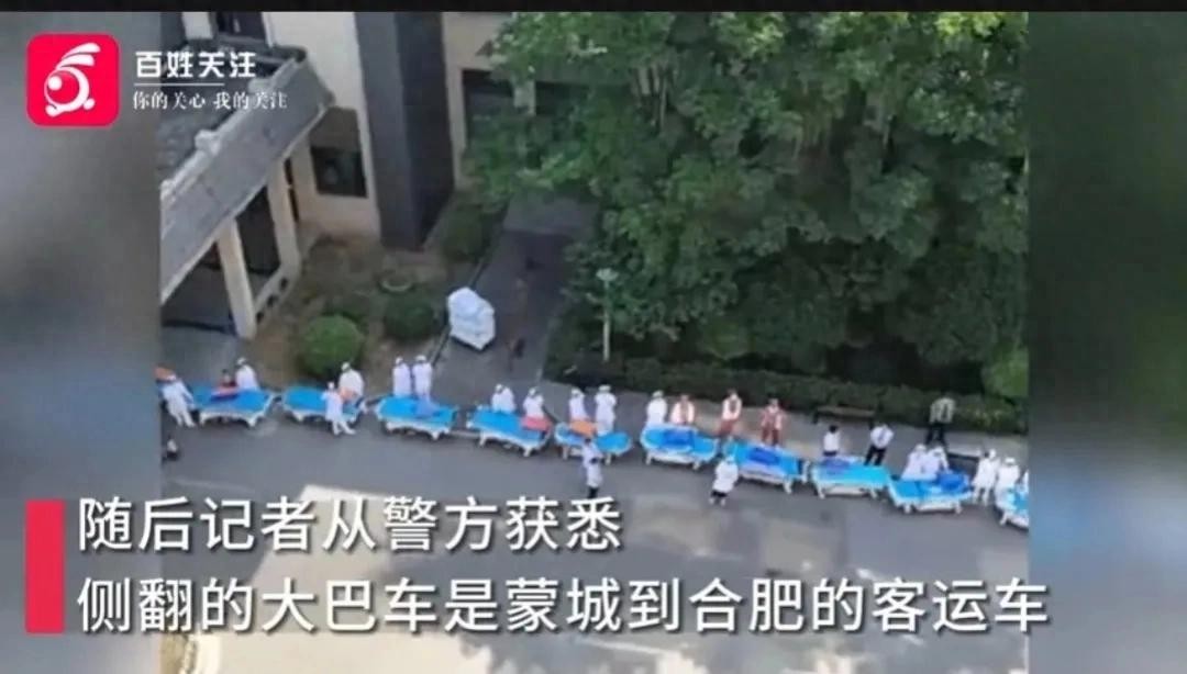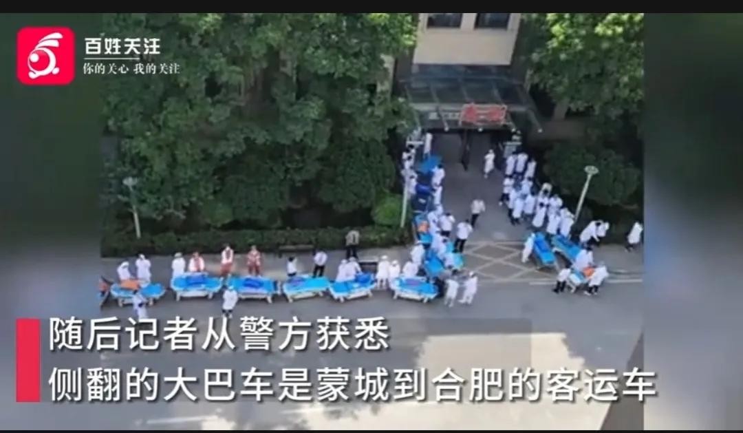 揪心!安徽蒙城至合肥客运大巴侧翻,13人受伤,现场紧急救援