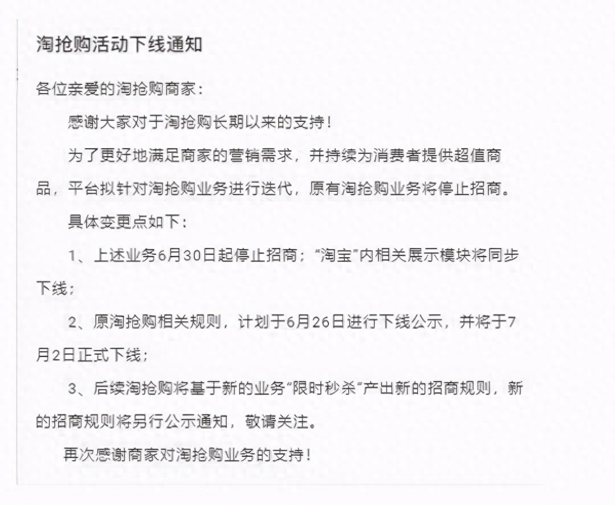淘宝特卖平台的“淘抢购”将下线,曾撑起千亿体量