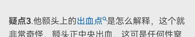 警方的法医论文中提到,死者的额头有轻微的擦伤,但死者的父母在接受采访时描述了额头上的针孔和出血点,这与法医的结论不符。此外,