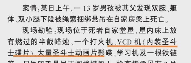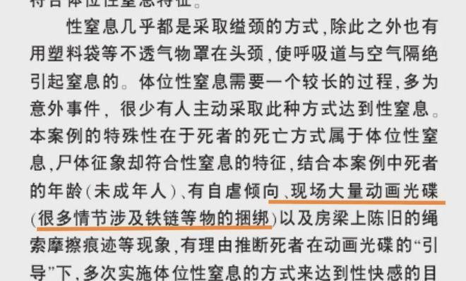 论文中还提到死者观看了动漫VCD《圣斗士星矢》,但这个动漫是一个热血打斗的作品,与性窒息没有直接关系。