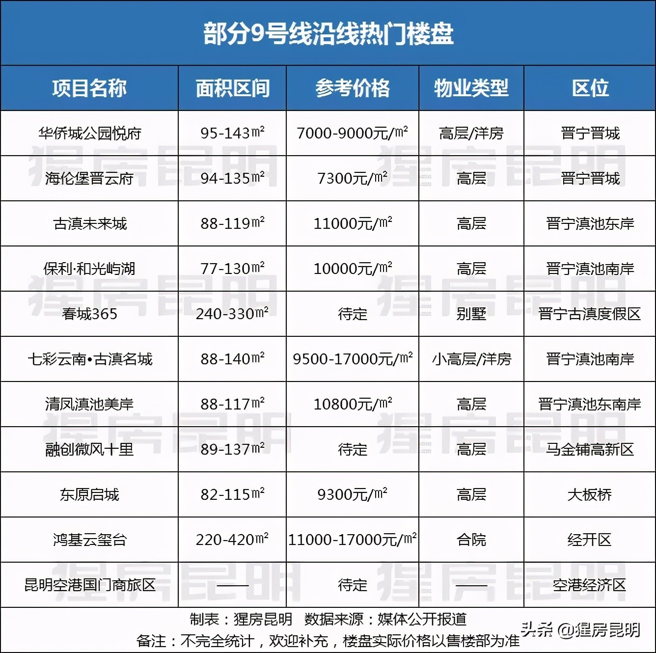 9号线惠及的主要是空港、马金铺和晋宁区片区,这些区域公共交通配套短板都比较明显,特别是晋宁片区,9号线是重要的交通配套,多个楼盘也以此作为宣传卖点。