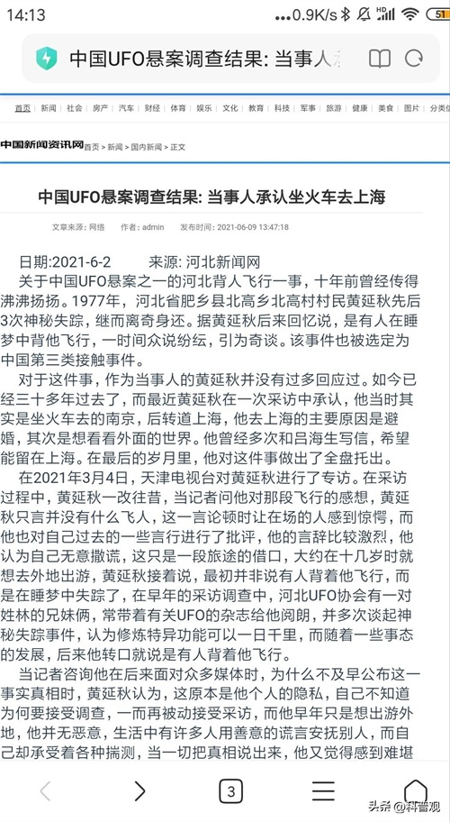 据黄延秋表示,在最初的时候,他只是说自己睡梦中失踪,后来随着自己的事迹传开,河北UFO协会里有一对兄妹来找到他询问情况。