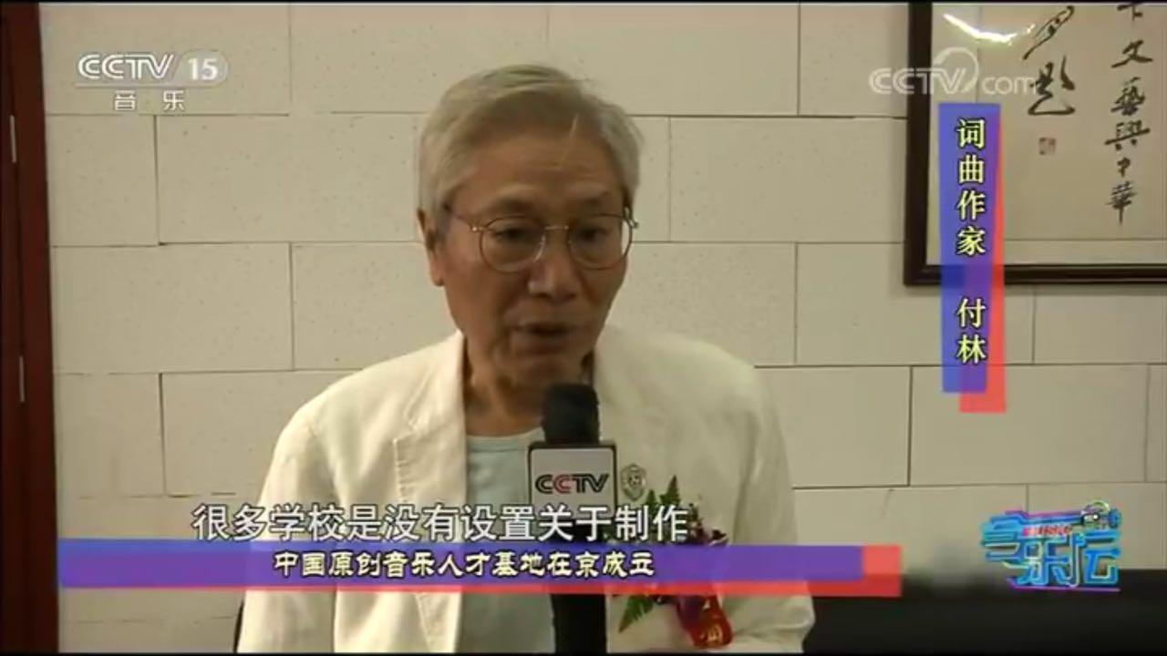 中国音乐家协会流行音乐学会主席、北京演艺专修学院名誉院长付林接受中央电视台记者采访
