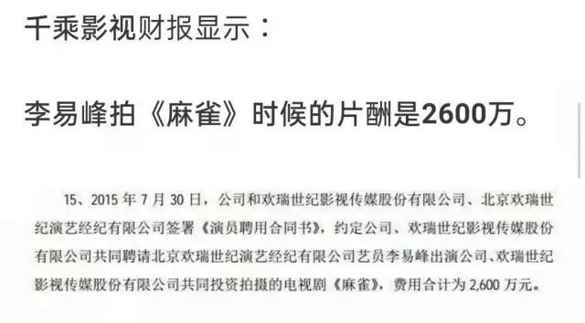 再加上李易峰主要的电视剧片酬也开始大幅度提升,让他迅速积累了大量财富。