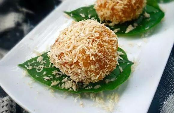 4.锅里倒入适量油加热至八成热,将水果沙拉球倒进去炸一分钟捞起滤干多余的油,装盘即可开吃