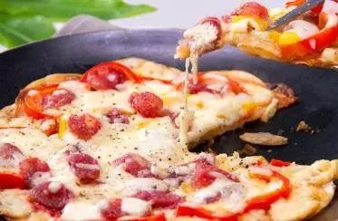 5、开盖收一下汁,出锅前撒点黑胡椒碎和盐调个味。一份超级快手的饺子皮披萨就搞定了