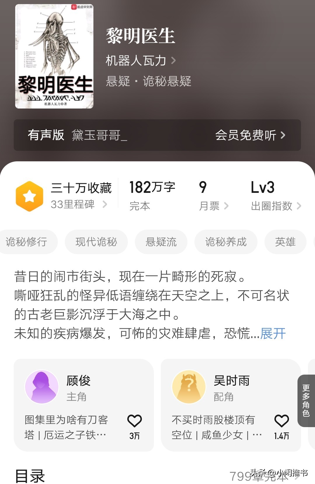 点评:本书别名恐怖复苏,人间如狱。故事挺精彩的,恐怖的灵异事件一件接一件,让人喘不过气,但是又一直吸引你看下去。晚上看有点吓人,不说了,我衣柜动了!Ps:最好看原版,直接封神。