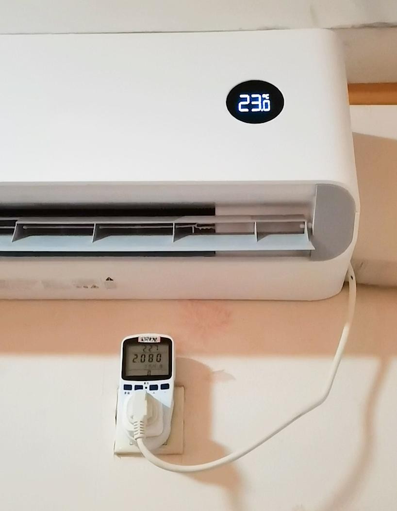 使用前几天用微型电力监测仪测量的数据,室外的天气温度是2℃,设置空调为制热模式,加上电辅热功能,温度设置为23℃;微型电力监测仪设置为0.56元一度电。