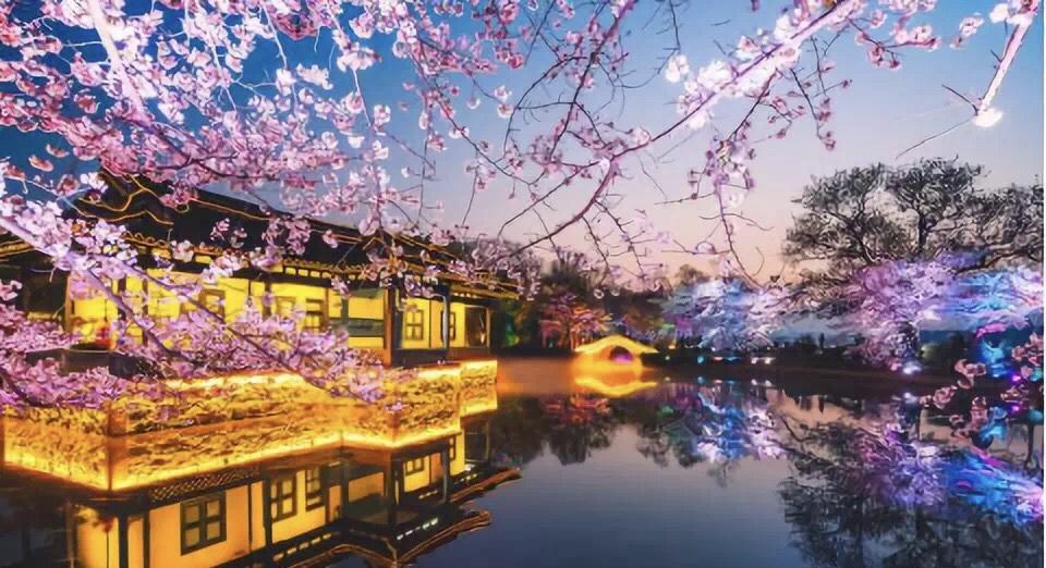 南京鸡鸣寺利用智能控制技术,产生光色的整体变化,颜色以唯美浪漫的的粉红色、粉紫色为主,赋予静态夜景以动态变化,营造出更具观赏感的夜景画卷,打造不一样的樱花盛宴。
