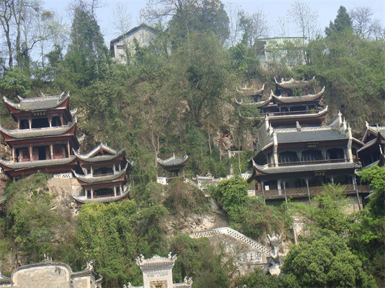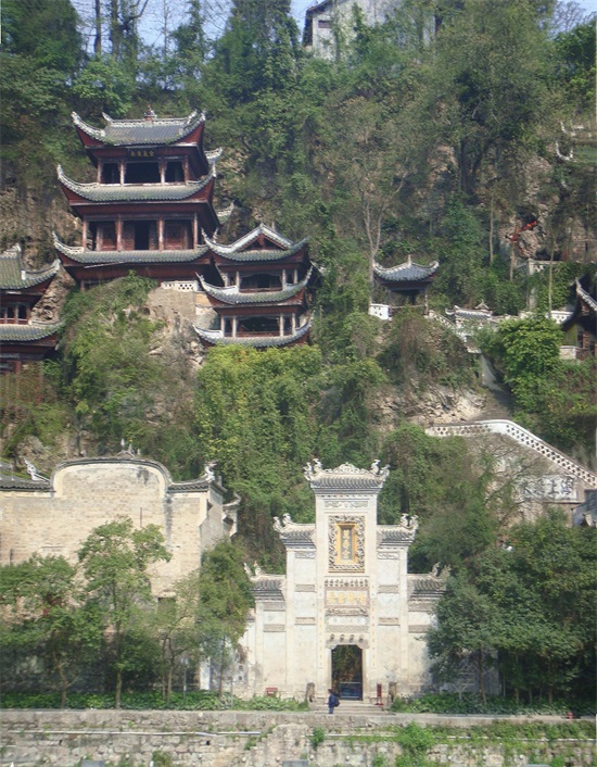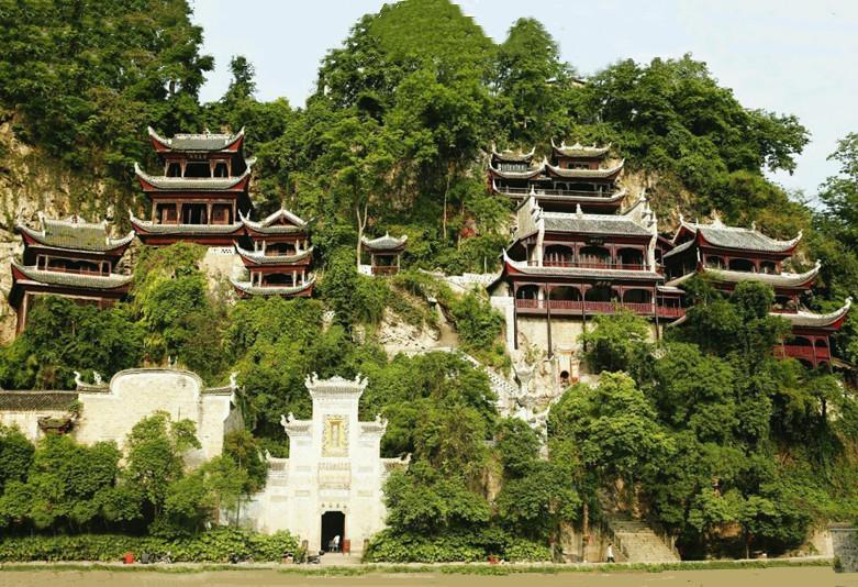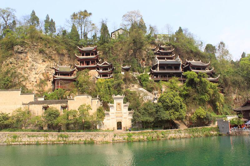 镇远青龙洞是一组融道、儒、佛三教合一的宗教建筑群。它位于城东舞阳河畔,坐落在中和山上,这里山势挺拔,峭壁悬崖,巨岩、洞穴和为一体。这组规模宏大的明清时代的建筑群,背靠青山、面临绿水,依崖傍洞、贴壁临空,错落有致、气势宏伟。它与甘肃麦积山、山西悬空寺齐名的,被誉为“中国古代三大悬空建筑”。