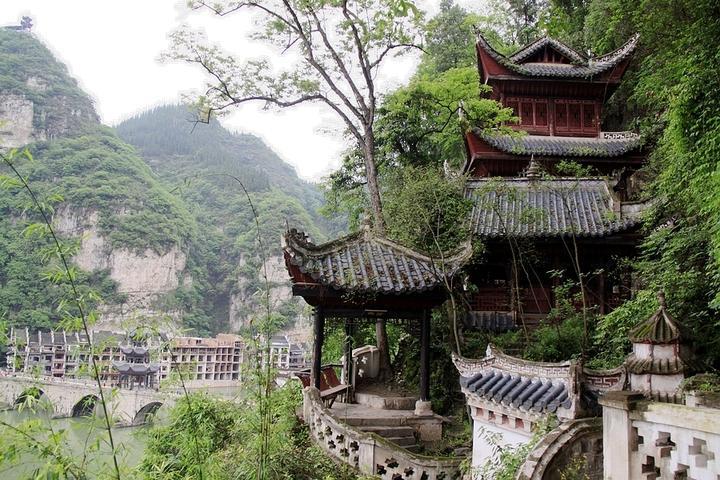 青龙洞这些造型独特的古建筑依山因地,分别采用了“吊”、“借”、“附”、“嵌”、“筑”等多种工艺,在一段悬崖上筑出中元洞、紫阳洞、青龙洞、万寿宫等一片阁楼洞天。建筑物与悬崖、古木、藤萝、岩畔、溶洞天然合成,融为一体,布局精妙、巧夺天工。1988年被列为全国重点文物保护单位。