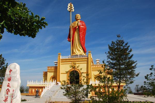 当时不其城为长广郡的郡治,笃信佛教的太守李嶷听说法显是到西方求经的名僧,就将法显接到不其城内。法显在这里逗留了一段时期,翻译了部分佛经,并在其靠岸登陆处创建了石佛寺(即栲栳岛之潮海院),从此,佛教在崂山地区声望大振。